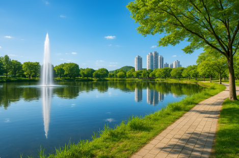 호수 주변 산책로는 완만한 구간이 많아 어린 아동도 이동이 용이하며, 분수대와 조형물이 설치되어 시각적 흥미를 유도한다. 여름철에는 분수 주변에서 간단한 물놀이도 가능하다.